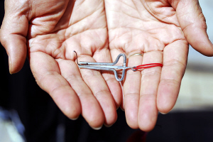 安宇歌介紹,口弦都是純手工制作的,最難制作的部分是能發(fā)音的中簧。制作中簧時(shí),選取原料須是圓形鋼絲,先要將其砸扁,兩邊是尖的,整個(gè)簧的距離由寬到窄,窄的部位向上折彎成鉤,留兩公分長(zhǎng)度,再折一小鉤。并且,中簧需高溫淬火,這是一個(gè)難度極高的環(huán)節(jié),全憑手感。如簧不淬火便會(huì)彈性不好,淬過(guò)了頭則一彈就碎,淬不到位會(huì)導(dǎo)致彈撥口弦時(shí)所發(fā)的聲音不佳。從某種程度上講,用口弦彈奏的音樂(lè)之所以引人側(cè)耳,關(guān)鍵就在這根中簧上。