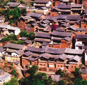 古城的村鎮(zhèn)入口處都有幾棵枝繁葉茂的大榕樹,村內(nèi)尚存仍在使用的古老水井。道路通達(dá)四方,民居互相毗連,沿街巷修建,每院的墻角與對方的墻角錯(cuò)讓。從蒼山流下的小溪穿村而過,巷巷流水潺潺,家家種樹養(yǎng)花,真可謂“村旁綠樹繞清流,園中桃李結(jié)碩果,院內(nèi)蘭桂飄幽香”。