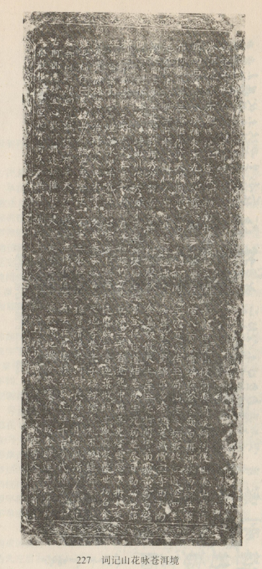 白文碑刻。明楊黼作。景泰元年(1450年)立,原嵌于大理縣作邑鄉(xiāng)慶洞莊圣元寺偏殿前廳北壁,后移至大理縣文化館。碑文14行,陰文正體,從右到左直行書寫。首行為題,其余正文,共13行,每行40字,只第9行41字,末行39字。全詩20節(jié),每兩節(jié)為一聯,共10聯。前4聯詠蒼山洱海的自然景色和地勢名勝,后6聯抒作者之情感。以白語吟誦,優(yōu)美動聽。這是目前保存最為完好的一塊白文碑。傅懋勣、肖雷南在40年代曾根據郭純仁的讀音注解此碑,有油印本。石鐘健、楊燦然、徐嘉瑞亦對此碑加以研究。1957年,徐琳、趙衍蓀以郭純仁讀音為本,用國際音標記音,并加翻譯?!睹褡逭Z文》1 980年第3期載有釋讀文章。
