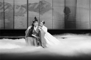 中國(guó)朝鮮族唱?jiǎng) 洞合銈鳌穭≌眨捍合闩c李夢(mèng)龍。 資料圖片