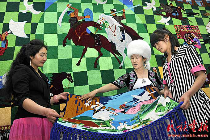 克孜勒陶鄉(xiāng)婦女手工藝刺繡合作社。手工刺繡業(yè)成為克孜勒陶鄉(xiāng)農牧民增收的一個渠道