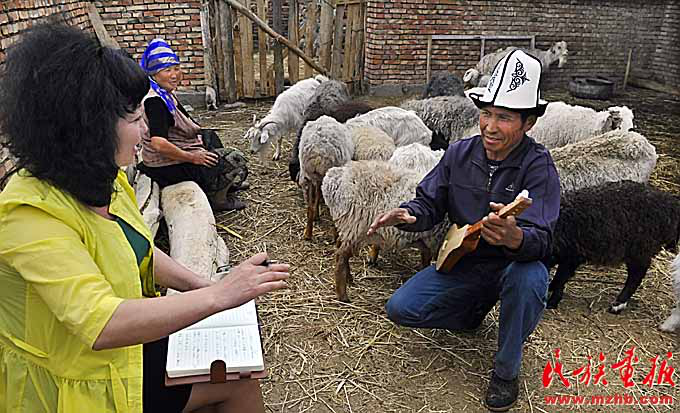 新疆維吾爾自治區(qū)民間文藝家協會工作人員在阿圖什市哈拉峻鄉(xiāng)挖掘整理《瑪納斯》