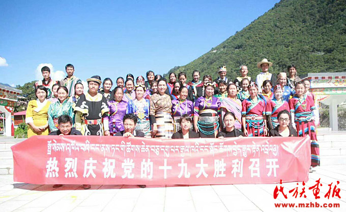 珞巴族聚居地——西藏自治區(qū)林芝市墨脫縣達(dá)木珞巴民族鄉(xiāng)的珞巴族群眾和其他各族群眾歡慶黨的十九大勝利召開(孔垂義 攝影)