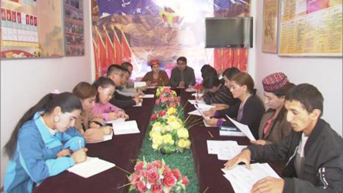米日姑麗·艾克米汗與學(xué)校的各族老師一起探討學(xué)校的發(fā)展