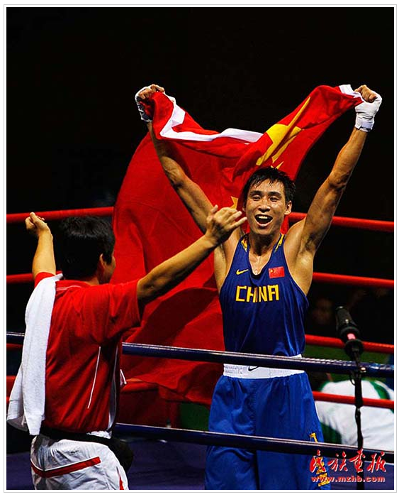 蒙古族拳擊運(yùn)動(dòng)員張小平獲北京奧運(yùn)拳擊比賽金牌(民族畫(huà)報(bào)資料)