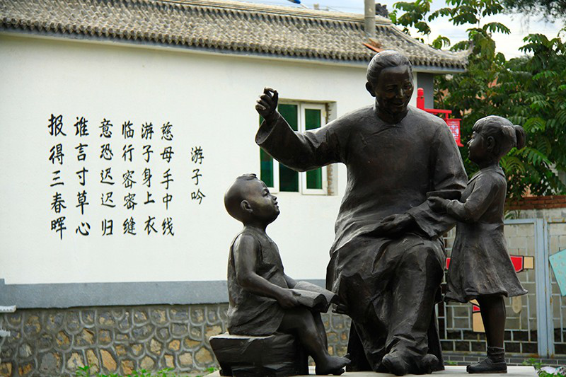 村子的胡同干凈整潔,精心設(shè)計(jì)的院墻上分別繪制著中國(guó)古代《二十四孝圖》浮雕、新編《二十四孝圖》彩繪圖、國(guó)學(xué)名言名句磚雕以及各種助人為樂兒童圖畫。