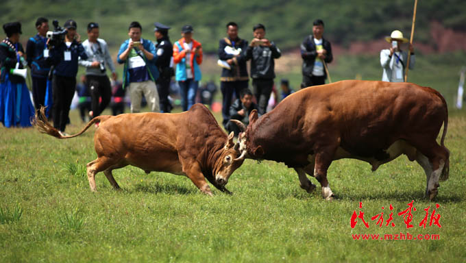 在力量與勇氣展示項(xiàng)目中,最激烈的賽事當(dāng)數(shù)斗牛、斗羊,兩頭斗志昂揚(yáng)的公牛在草地上激烈地用牛角頂著對(duì)方,發(fā)出響亮的牛角撞擊聲。斗羊場(chǎng)的激烈在于,兩只公羊在相互頂撞前,往往后退十幾米,方便加速,增加頂撞時(shí)的力量,羊角碰撞的聲音清脆響亮,久久回蕩在賽場(chǎng)上空。圍觀的人們里三層外三層地圍著,緊緊跟著對(duì)壘中的牛羊一起移動(dòng),跑著跳著在一旁高聲吶喊。