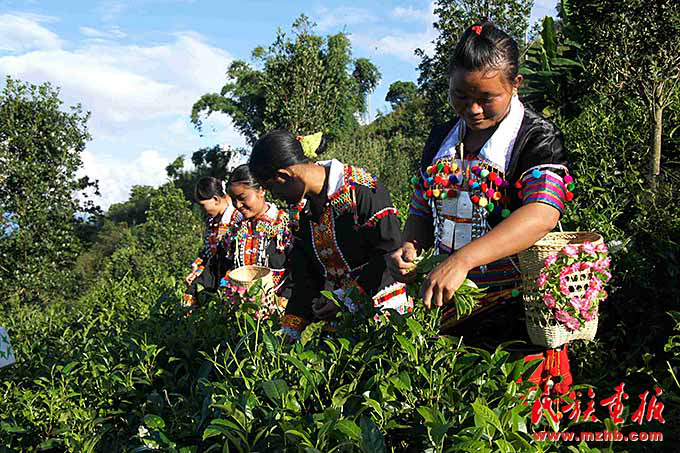 德昂山寨婦女們采春茶