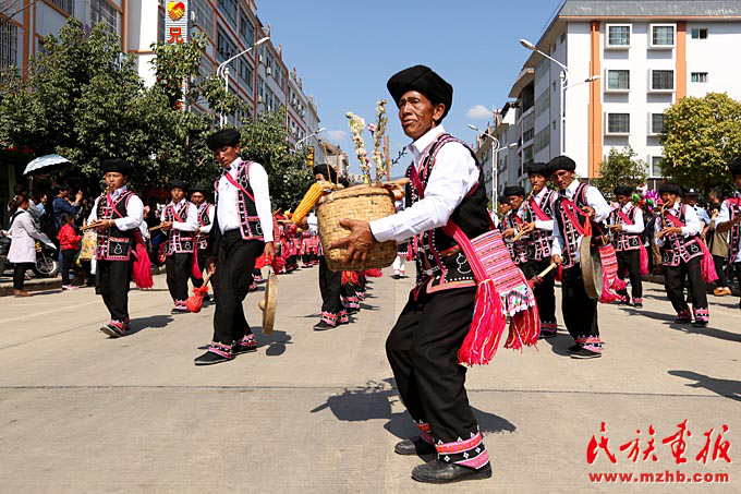 正月初三,鄉(xiāng)鎮(zhèn)拜年隊(duì)伍走進(jìn)縣城(瀾滄縣民宗局供圖)