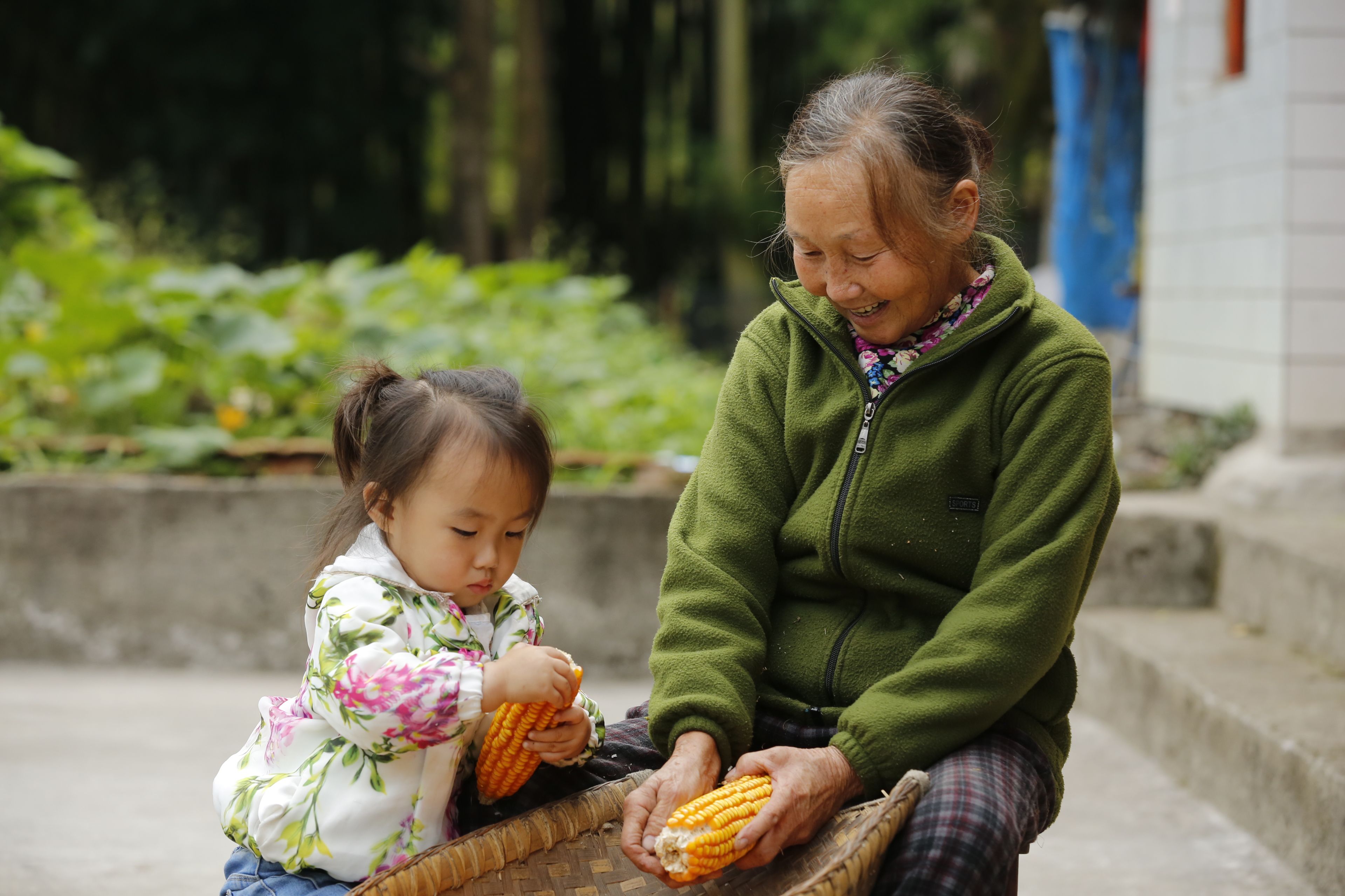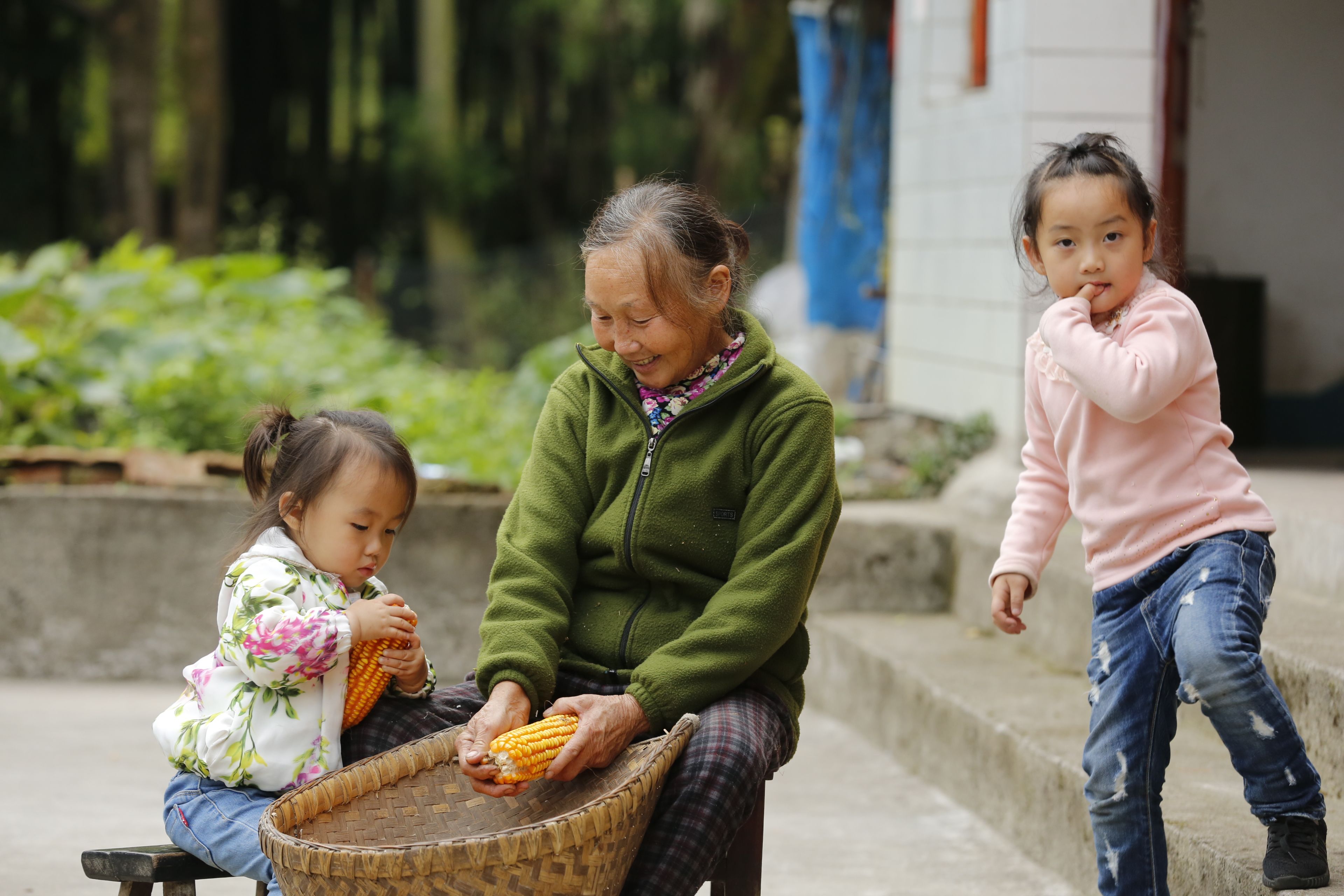 貴州貴陽(yáng)苗族日常生活-老年人與兒童剝玉米