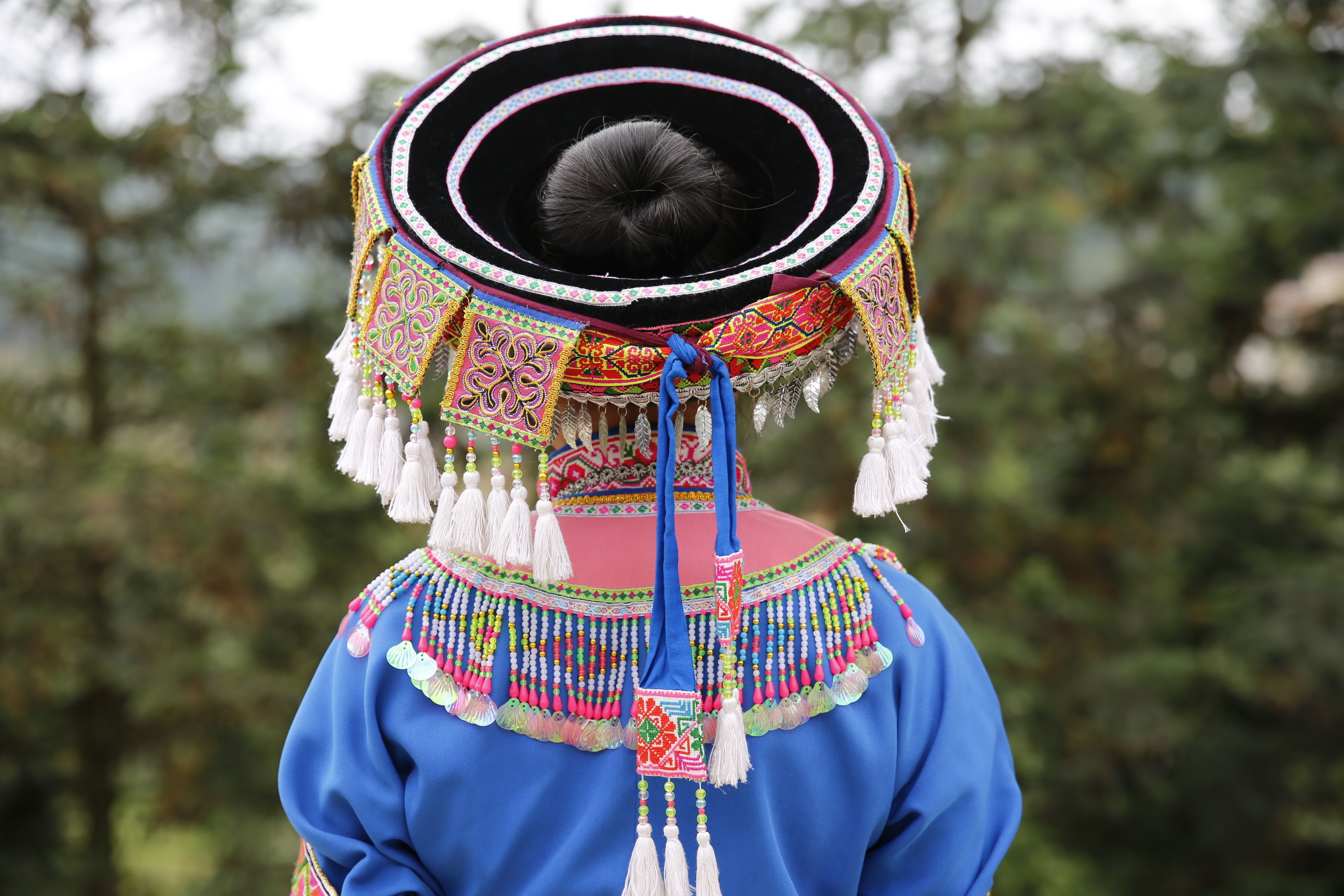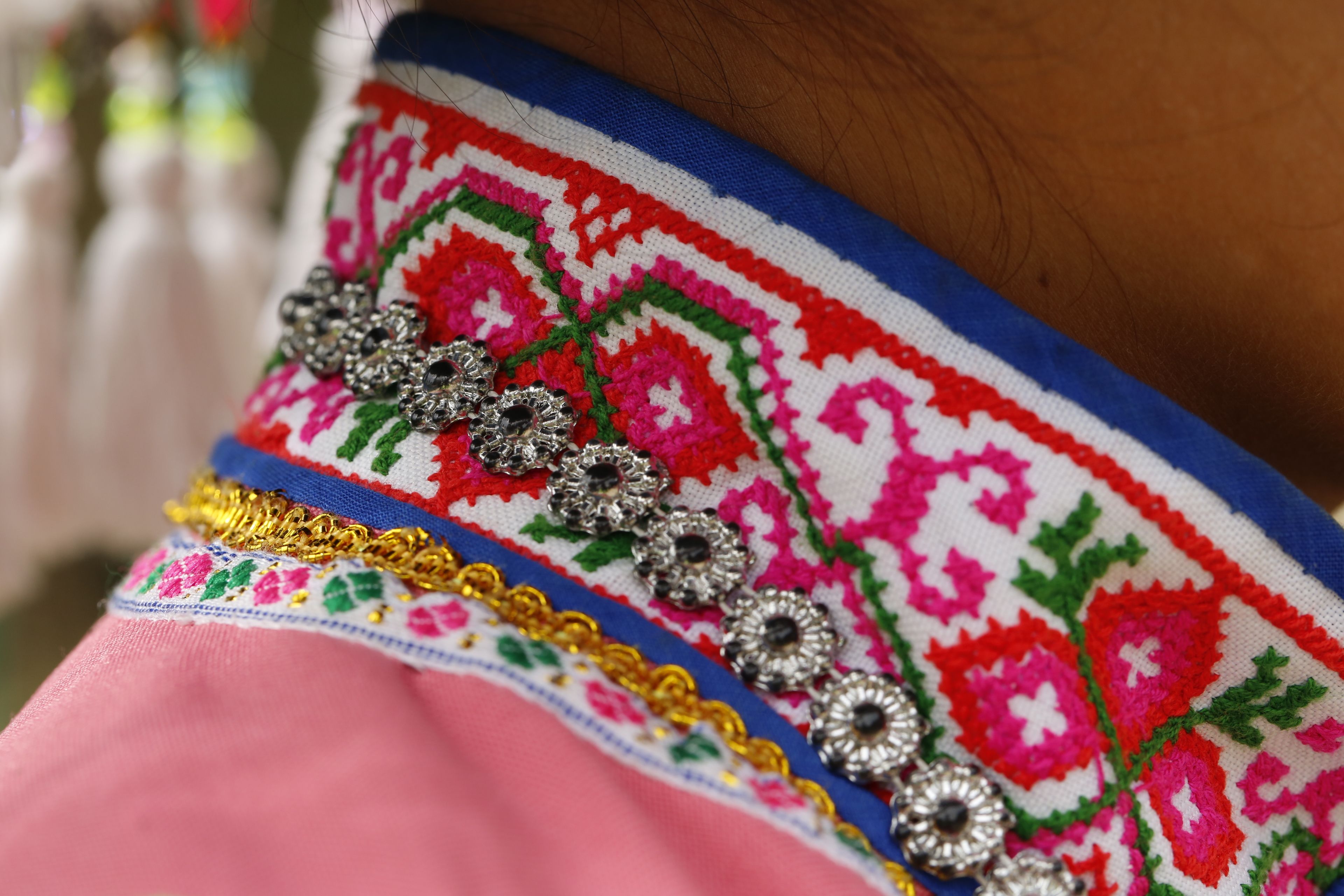 苗族女子對(duì)襟刺繡上衣-衣領(lǐng)背面繡花及裝飾