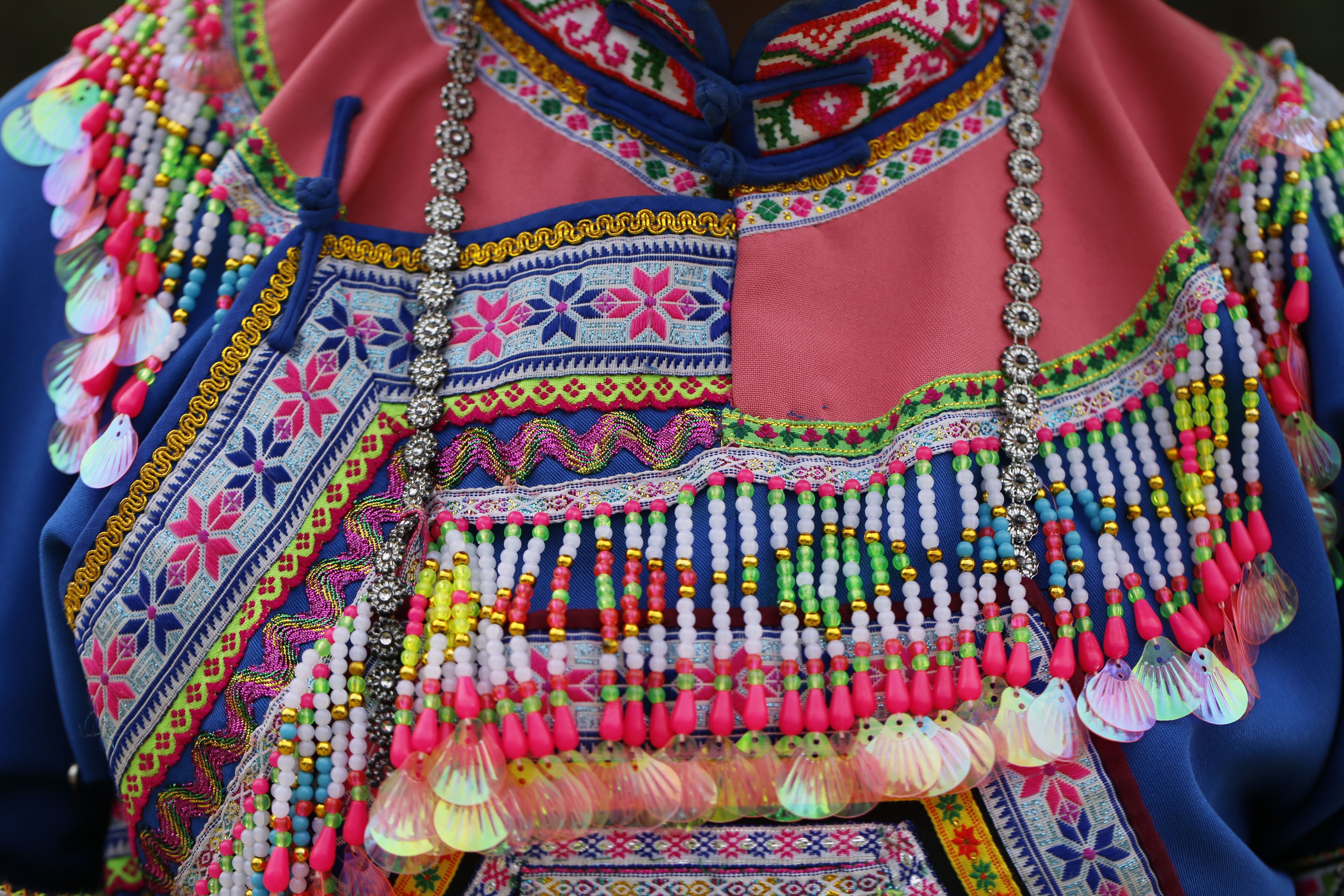苗族女子對(duì)襟刺繡上衣-繡花和裝飾