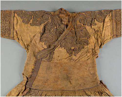 1978年出土于內(nèi)蒙古包頭達茂旗明水墓的蒙元辮線袍 內(nèi)蒙古博物院館藏一級文物