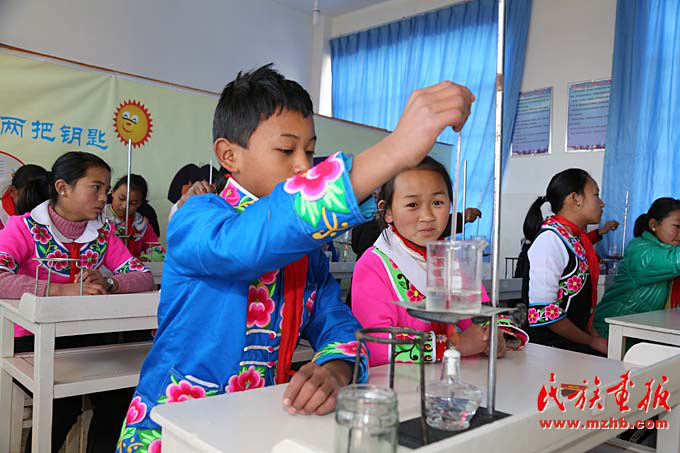 臘灣民族小學(xué)四年級的學(xué)生在上實(shí)驗(yàn)課