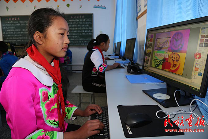 臘灣民族小學(xué)五年級的學(xué)生在上計(jì)算機(jī)課,李欣潔同學(xué)在認(rèn)真地制作PPT
