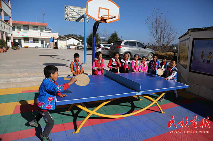 課間休息,臘灣民族小學(xué)學(xué)生在打乒乓球