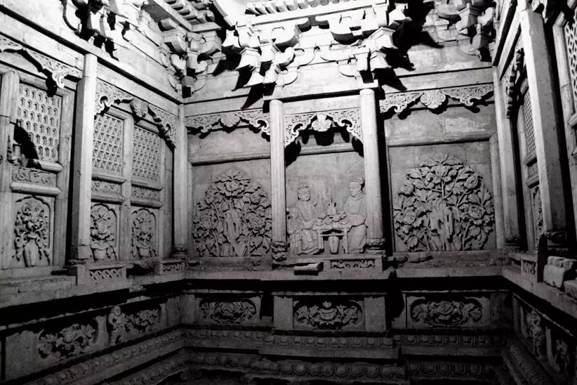 中國磚雕是由東周瓦當(dāng)、空心磚和漢代畫像磚發(fā)展而來的。漢代畫像磚是墓室預(yù)制構(gòu)件的大型空心磚,它是在濕的泥坯上用印模捺印各種圖像。北宋時形成磚雕,成為墓室壁面的裝飾品。在河南、山西、甘肅等地發(fā)掘的北宋墓室,三面墻壁均以磚雕貼砌而成。墓室內(nèi)的磚雕數(shù)量、質(zhì)量以及所選用的題材,都取決于墓室主人的社會地位。常見的題材有墓室主人夫婦對坐、男仆托盤、侍女執(zhí)壺等,再現(xiàn)了墓室主人生前的生活情景。金代,墓室磚雕的內(nèi)容更加豐富,技藝也有所提高。