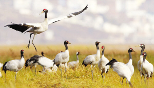 在草原腹地,隨時都會遇上藏野驢、藏狐貍,遠(yuǎn)遠(yuǎn)就能望見棲息在湖邊水草地上的珍稀黑頸鶴,甚至還能遇上草原的“清道夫”——金雕。