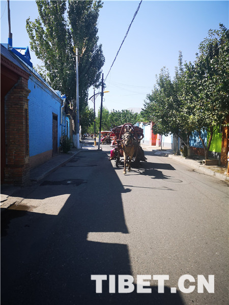 目前,喀贊其仍保留著一定數(shù)量的文物古跡,包括自治區(qū)級文物保護單位1個(陜西回族大寺),市級文物保護單位7個,另有12處清真寺建筑。圖為具有當?shù)靥厣呐R街藍色大門。