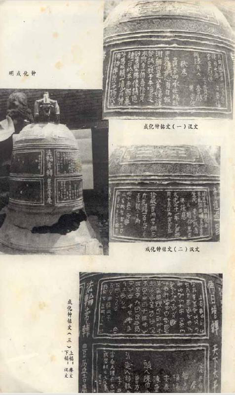1982年,貴州省大方縣文物工作者在大方縣城關小學內(nèi)發(fā)現(xiàn)成化鐘。因鐘面彝漢文均注明此鐘鑄造于明成化二十一年(1485年),故稱之為“成化鐘”或“明成化鐘”。鐘面為彝漢兩種文字銘刻,彝文130字,是目前發(fā)現(xiàn)的唯一寫有紀年款識的彝文銘文。文字書寫嚴謹,布局整齊。
