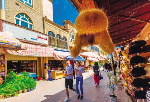 阿熱亞民俗文化街有多個巴扎,分別是首飾巴扎、花盆巴扎、坎土曼巴扎、木器巴扎、維藥巴扎、帽子巴扎。路上隨處可見妝扮時尚的當(dāng)?shù)厍嗄辏⒆觽兇┲贫淳欧峙W醒潯?/span>