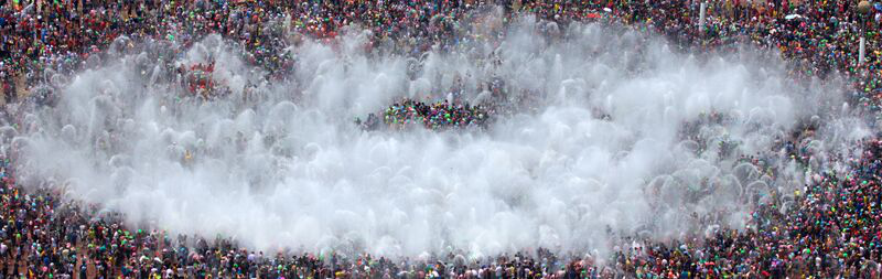 新年潑水是一種禮節(jié),既隆重又熱鬧。除夕那天,人們先到佛寺里,取來最干凈的清泉(江河)水,采來最香的鮮花,把花瓣撒在水中,每人取一瓢,用含著花香的清水給佛像沐?。ㄏ笳鹘o佛祖沐?。?,祈求來年平安。儀式舉行完后,人們用樹枝和鮮花浸水相互淋灑,以示祝福,口中不斷地說著“薩瓦沙麗”(吉祥安康)“如利京宛”(幸福健康)。對(duì)長者只能輕輕地淋灑在肩和背上,表示尊重。到佛寺外和街上,年輕人們就可以潑水狂歡,以示祝福和歡樂。