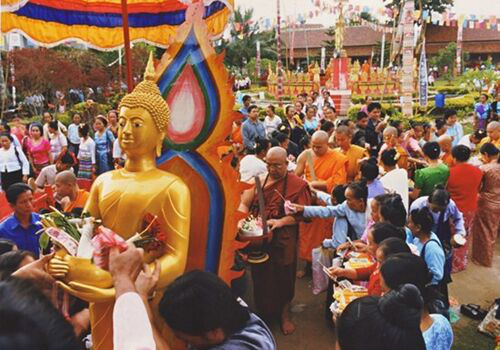 “奧瓦薩”時(shí)間在傣歷1 2月1 5日(陽歷9月中旬)。這一天,表示從“關(guān)門節(jié)”以來的安居齋戒期已滿,男女老幼皆盛裝去佛寺里拜佛,以食物、鮮花、蠟條、錢幣獻(xiàn)佛,向佛祖懺悔,祈求佛祖賜福降平安,同時(shí)舉行盛大的娛樂集會(huì),“章哈”演唱,放高升、晚上放焰火、放孔明燈等,慶祝開門節(jié)。此時(shí),雨季已過,稻谷收割完畢,故也稱為慶祝豐收的節(jié)日。