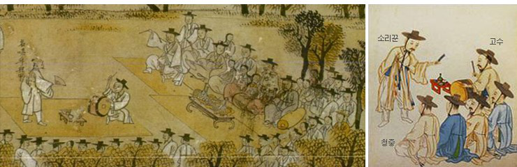 盤嗦哩通常由一人演唱,另一人用鼓伴奏。這種形式大約在18世紀(jì)中朝鮮王朝后期開始出現(xiàn),19世紀(jì)末是它的黃金時(shí)代。關(guān)于它的起源有兩種不同的看法,一種認(rèn)為它是18世紀(jì)的游浪藝人根據(jù)某種戲劇創(chuàng)造的,另一種則認(rèn)為是來(lái)源于薩滿教儀式中的歌曲。盤嗦哩的故鄉(xiāng)是韓國(guó)全羅北道的南原,至今那里仍盛行這種演唱。
