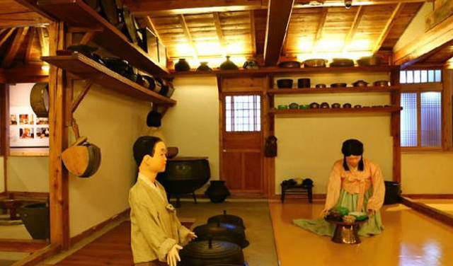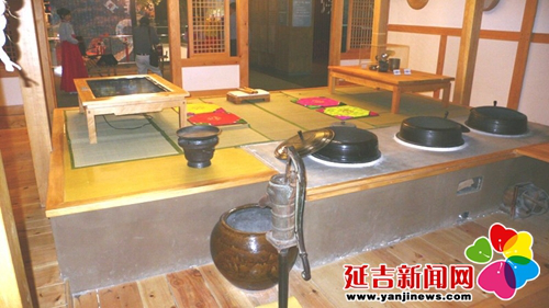無論什么類型的朝鮮族傳統(tǒng)民居,只要走進(jìn)房屋,第一個(gè)感覺就是有很大的一個(gè)炕。炕是朝鮮族人在室內(nèi)的主要活動(dòng)空間,你看有的炕上親友們?cè)趪缹?duì)飲,有的炕上婦女們?cè)谧龌钣?jì),還有的炕上孩子們?cè)谕嫠?。炕大,散熱面積就大,屋里到了冬天就會(huì)顯得特別暖和。在延邊地區(qū)朝鮮族房屋內(nèi)的灶坑更是別具一格,它下陷在地下,底部低于地面,上部還有蓋板,而蓋板和鍋臺(tái)、炕面形成了一個(gè)平面。據(jù)說,這種灶坑是既好燒、又衛(wèi)生。