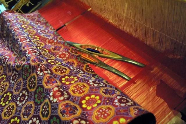 打結(jié):這是織工的基本技能,也是學(xué)習(xí)手工織錦的第一道關(guān)。在一分鐘內(nèi),用極細(xì)的絲線打出十二個結(jié)并剪掉線頭,使其看上去像從來沒斷的才能及格。