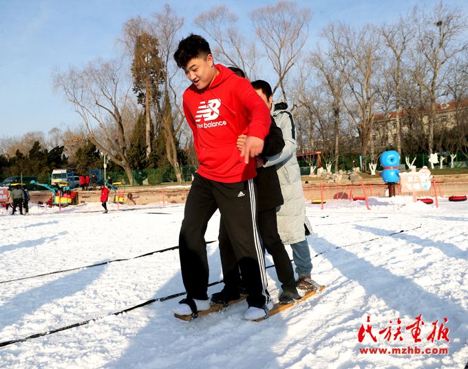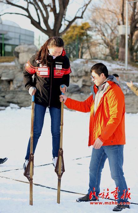 為了更好地將冰雪趣味健身賽事、冰雪健身體驗(yàn)活動(dòng)等送到全市各族群眾身邊,北京市民族傳統(tǒng)體育協(xié)會(huì)創(chuàng)造性地將綾球、高腳競速及板鞋競速等少數(shù)民族傳統(tǒng)體育項(xiàng)目與冬季冰雪相結(jié)合,整理、發(fā)展了雪地綾球、雪地高腳、雪地板鞋等項(xiàng)目,在現(xiàn)場進(jìn)行展示交流,吸引大批群眾熱情參與。