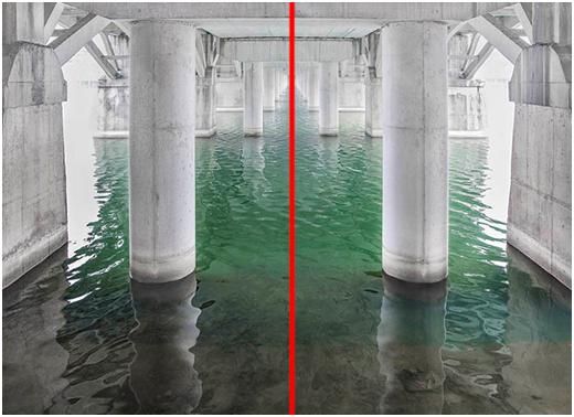 因?yàn)橥敢暫軓?qiáng),這個(gè)片子遠(yuǎn)處匯聚點(diǎn)處的亮度還是有些過亮,而且裁切后,場景也不是太開闊,片子不再是寬幅的,像素肯定也會降低??纯次覀兡懿荒茉龠M(jìn)一步的改善一下。