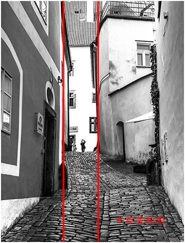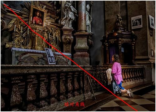 我們看到下面這張圖也是以對角線的構(gòu)圖形式,只不過這個(gè)對角線從畫面中明顯的看不出它是一個(gè)對角線,而是畫面中一些重要元素形成的一個(gè)對角線趨勢,我們暫且把它稱之為暗對角線。