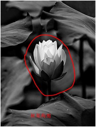 這張荷花改成黑白色調(diào)后,荷葉、荷花形成了巨大的反差及包圍的氛圍,也屬于框架式構(gòu)圖形式。