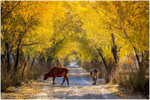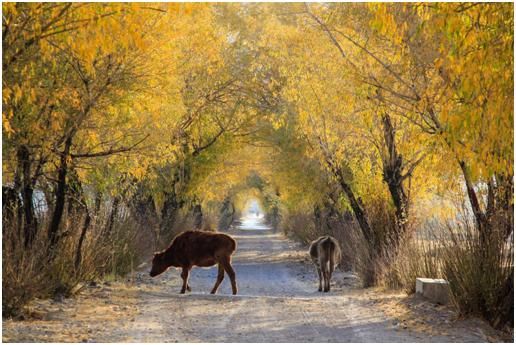 這幅圖采取了包圍式構(gòu)圖,就是框架式構(gòu)圖,早晨的暖光,加上黃色的樹葉,使得整個(gè)片子有了很好的秋意氛圍,構(gòu)圖也是不錯(cuò)。但這張照片,還是可以有改善和提升的地方。