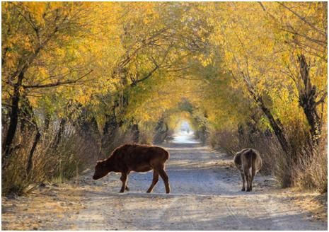 第二點(diǎn),拍攝時(shí)機(jī)的把握上還是差了一點(diǎn),應(yīng)該在牛走到比較亮的地方,才去拍攝,這樣主體會亮一些,在晨光的照耀下,金黃色的毛色也會更醒目。