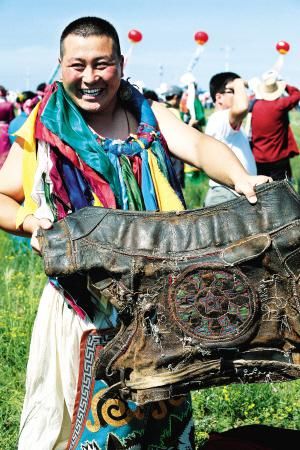 當(dāng)然,后來(lái)那達(dá)慕增加了許多新項(xiàng)目,比如賽駱駝、提水、縫蒙古袍扣子、撿牛糞、打斷牛骨比賽、蒙古象棋比賽、沙嘎(羊拐)比賽等。在北京舉辦的那達(dá)慕里,還融入了現(xiàn)代三大球類比賽項(xiàng)目,為了集體參與,增加了拔河比賽、扔沙包、服飾比賽、兒童說(shuō)蒙古語(yǔ)比賽、兒童唱歌比賽等。