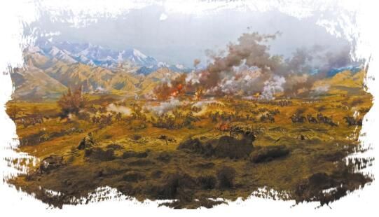 中國(guó)工農(nóng)紅軍西路軍紀(jì)念館內(nèi)復(fù)原當(dāng)年戰(zhàn)斗場(chǎng)景的油畫(huà)。賈泓 鄭思哲攝