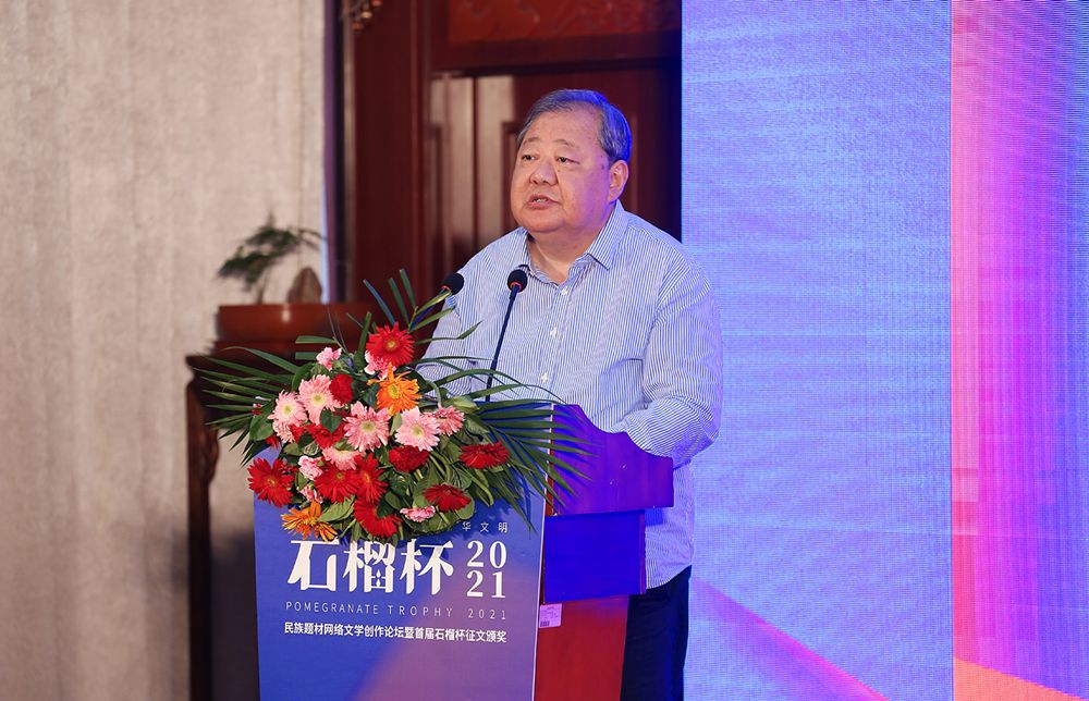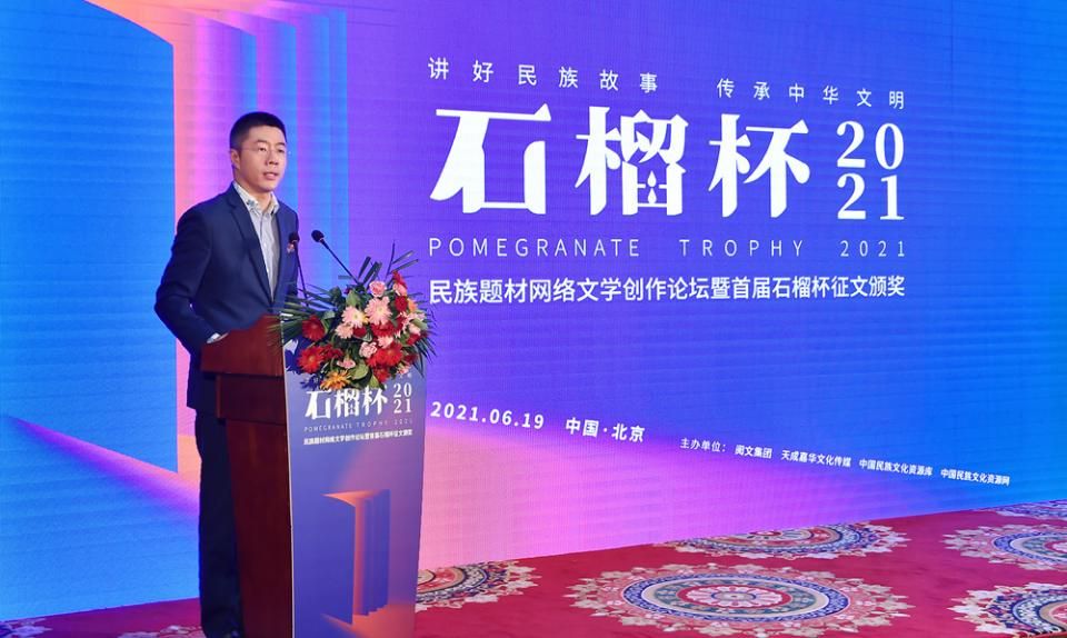 6月19日,民族題材網(wǎng)絡(luò)文學創(chuàng)作論壇暨首屆石榴杯征文大賽頒獎典禮在京舉行。作為國家民委主辦的“中華民族全家?!毕盗谢顒又唬讓檬癖魑拇筚惖玫搅藝颐裎幕麄魉竞椭袊贁?shù)民族文化藝術(shù)促進會的指導(dǎo)與支持,由閱文集團聯(lián)合天成嘉華文化傳媒、中國民族文化資源庫、中國民族文化資源網(wǎng)共同舉辦。本屆大賽以“講好民族故事 ,傳承中華文明”為主題,涌現(xiàn)出眾多弘揚民族精神、表達文化自信、傳播正能量的作品。經(jīng)過專家推薦及嚴格評審,《草原有座蒙古包》、《走西口之天山行》、《彩云微光》等三部作品獲“最具民族風采獎”,《神藏》、《歡想世界》、《爛柯棋緣》、《時光和你都很美》、《恰似寒光遇驕陽》、《黎明醫(yī)生》、《暖君》、《驚雷》、《大訟師》、《消防英雄》等十部作品獲“優(yōu)秀作品獎”。所有獲獎作品都將收錄入中國民族文化資源庫。中國作家協(xié)會副主席、書記處書記吉狄馬加表示,本屆石榴杯大賽是在黨和國家長期以來堅持的對民族文化、少數(shù)民族作家創(chuàng)作和民族題材創(chuàng)作的大力扶持下,依托網(wǎng)絡(luò)文學平臺,將文學作品與影視作品改編、游戲、動漫產(chǎn)品制作結(jié)合起來,探索的一條發(fā)展民族文化的新路,具有開創(chuàng)意義。