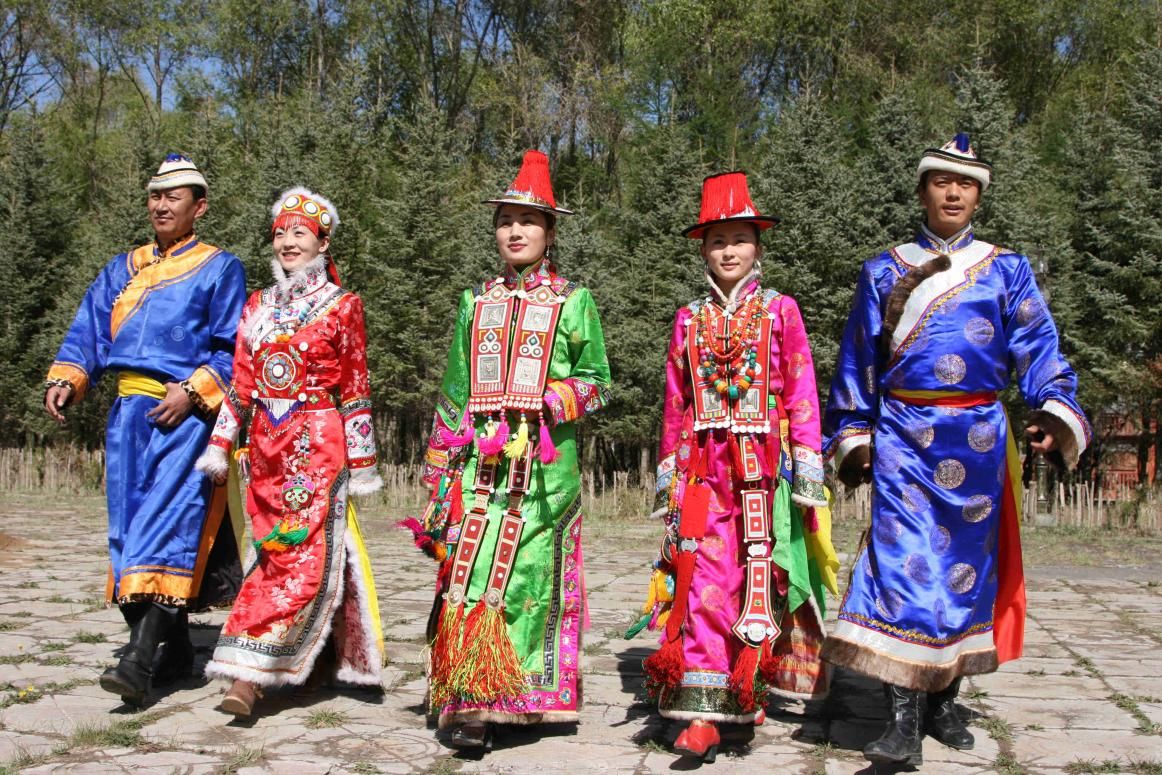裕固族服飾大致可分為婦女服飾、未婚女子服飾和男子服飾三類。婦女服飾上有“衣領(lǐng)高、帽紅纓”的特征,婦女的帽子特點(diǎn)鮮明,東部各部落的婦女帽子形似禮帽,但頂部呈小圓頂形;西部各部落婦女帽頂則是尖頂,帽沿后部卷起。紅纓帽一般以芨芨草編織或羊毛搟制帽胚,用紅布做帽里,白布做帽面,帽沿為鑲有花紋的黑邊,帽頂配有紅纓,故稱“紅纓帽”。裕固族婦女服飾中的頭面是一件非常精制而價(jià)值昂貴的民間工藝品,用銀牌、珊瑚、瑪瑙、彩珠、貝殼等穿綴而成,共分三條,胸前左右兩條,背后一條。頭面也是裕固族已婚婦女和少女的區(qū)別標(biāo)志,婦女出嫁成婚后方可戴頭面。裕固族男子服飾也有其獨(dú)特之處,頭戴金邊白氈帽,帽沿后邊卷起,身穿大領(lǐng)偏襟長袍,衣料大多以布、綢、緞或褐子、獸皮為主,扎彩色腰帶,佩有腰刀、火鐮、鼻煙壺、煙荷包等飾品。裕固族有專門的婚禮服飾,色彩和配飾都有一定的規(guī)矩和要求。