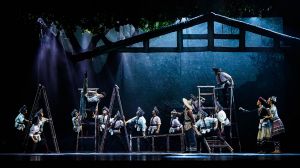作為一部舞劇,《幸福花山》的主人公郭龍和項(xiàng)彩妹,還有項(xiàng)老爹、項(xiàng)母、項(xiàng)虎、孕婦、小石頭等人物形象要在舞臺(tái)上立起來(lái),不僅要“跳”得好,還得“演”得好?!八茉烊宋镄蜗?,講述故事前因后果,表現(xiàn)人物內(nèi)心層次,對(duì)我來(lái)說(shuō)是最大的挑戰(zhàn)?!痹趧≈邪缪蓓?xiàng)老爹的演員李玄說(shuō)。