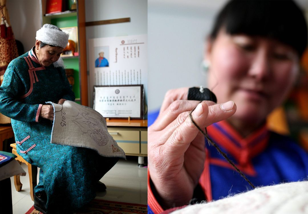2014年,“氈繡技藝”成功入選了第四批國家級(jí)非物質(zhì)文化遺產(chǎn)代表性項(xiàng)目名錄,而如今,古老的蘇尼特氈繡技藝再一次開始風(fēng)靡一時(shí),延伸到了抱枕、沙發(fā)墊、手機(jī)套、電腦電視機(jī)蓋布、包包、筆筒上等一系列現(xiàn)在產(chǎn)品上。