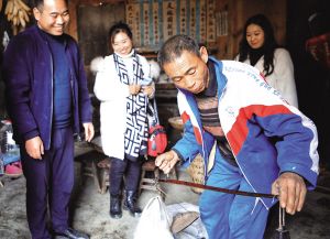 在村里修復(fù)舊屋的趙貢彩接到游客電話,馬不停蹄地趕回家中,自家手工制作的苕粉成了游客心心念念的香餑餑。拿出早已生銹的秤桿,一袋袋苕粉被游客搶著購買?!岸际橇糁约页缘模南胫苜u出去喲?!毙χf罷,趙貢彩拿出手機,微信一掃,錢款立即到賬。
