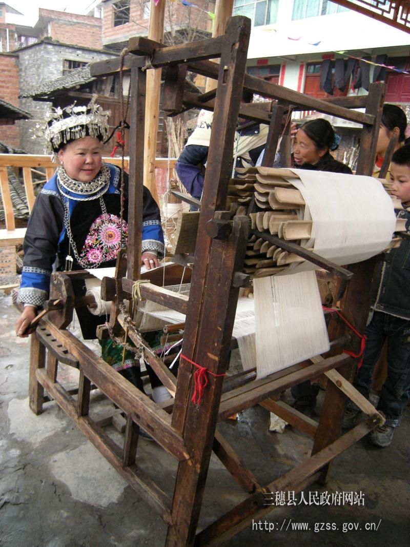其制作主要包括紡織、靜染、裁縫、刺繡、織錦、制作銀飾、鑲綴飾物等工藝?,F(xiàn)在的三穗苗族服飾無(wú)論是服飾的款式,紋飾的造型、顏色的喜好以及織繡、染色的技術(shù)都與歷史一脈相承,具體而言,三穗苗族不同類型的服飾都有各種刺繡、織錦裝飾而成,而且配有各種不同顏色的花卉,山川河流、飛禽走獸等圖案,是一種具有地方民族特色的民族服飾。
