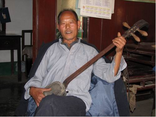 五峰南曲無(wú)專業(yè)藝人,“門第師”家傳者居多。師徒間手藝南曲兼學(xué),親朋相教亦不少。其演唱形式以坐唱為主,一人自彈自唱,或二人一彈一唱,亦可多人一起彈唱。自制小三弦是其主要伴奏樂(lè)器,也有配以二胡、簡(jiǎn)板的,并不拘于一格。