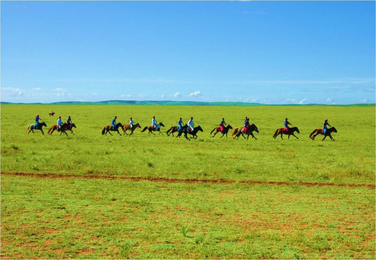 蒙古人對賽馬很重視。牧民平時(shí)發(fā)現(xiàn)好馬,就進(jìn)行調(diào)教,不是那達(dá)慕也進(jìn)行賽馬,賽馬又分為快馬、走馬和顛馬??祚R,八歲以上的賽程60里;八歲以下的40~50里;走馬,賽程30里。旗級那達(dá)慕的冠軍馬,授予“駿馬”稱號,佩戴纓子和彩帶。快馬比賽,多由兒童們進(jìn)行,賽馬時(shí),有若干騎馬裁判參加,一二三等馬分別授旗做記號。