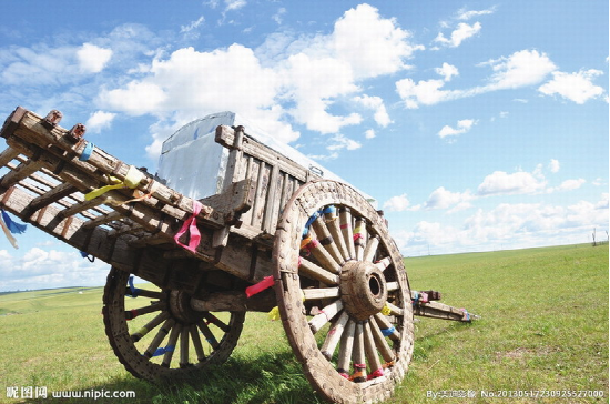 蒙古族牧民常用的一種木制大輪車。多用樺木或柳木制做。車輪高約1米,車身重約百斤,可載重300—450公斤,日行約30余公里。每車用一頭牛來拉,一人可駕馭數(shù)輛,適于在草原、沙漠、雪地等行走。亦可將數(shù)十輛勒勒車首尾相接形成近百米長的車隊,十分壯觀,也形成了草原上特有的風情?,F(xiàn)在已多被膠皮鐵輪的軸承車所替代。另外還有一種“蒙古轎車”,是一種在勒勒車基礎(chǔ)上經(jīng)過改造專門乘人的車。其與勒勒車不同之處在于車體上有用柳條子彎曲后扎成的車棚,棚子的外面用毛氈包圍,形成一個既擋陽光,又擋風雨,防曬御寒的帳篷。