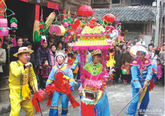 利川燈歌,又名燈調,始于清代初期,已有300多年的歷史,是人們逢年過節(jié)之時以彩龍船為道具,畫地為臺、亦唱亦演的民間藝術形式。2011年5月,利川燈歌被國務院公布為第三批國家級非物質文化遺產名錄。