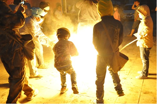 不到黃昏,鞭炮聲就響起來了。新生兒的父親點(diǎn)燃火把后,孩子們迫不及待地拿著小火把和松明粉,跑來跑去燒新生兒的的各種親戚,大人們樂呵呵地接受孩子們噴灑過來的火焰,并一致說著很吉祥的祈愿祝福語。“從此晦氣不在嘍!”、“一年更比一年好呀!”、“紅紅火火又一年”。男女老少在火把樹下吃喝玩樂,其樂融融。糖、炒蠶豆、梨、蘋果等被大家傳來傳去,新生父親挨個(gè)向親友敬酒。親友鄰居喝著喜酒,一致祝福新生兒安康成長,將來富貴吉祥。