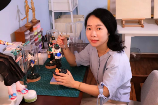 讓人驚艷的,還原度無比高的作品人物服飾,這其中還有冰冰媽媽的一些的建議呢,雕雕琢琢,便有了生動形象的這些精致作品。聊起整個(gè)創(chuàng)作過程的冰冰,笑盈盈地說:創(chuàng)作粘土惠女作品,是一件讓我感到滿足和幸福的事情。之后也會持續(xù)創(chuàng)新,精益求精地進(jìn)行創(chuàng)作。